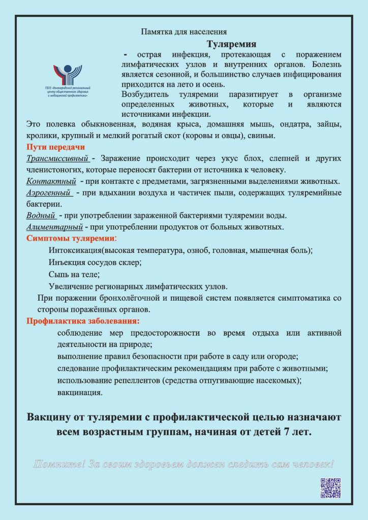 Туляремия –инфекция, протекающая с лихорадочным синдромом, увеличением лимфатических узлов и полиморфными проявлениями, обусловленными входными воротами. Человек заражается при контактировании с больными животными (снятие шкуры, сбор грызунов) или при употреблении в пищу продуктов и воды, инфицированных животными и по этому чаще болеют охотники и рыболовы.