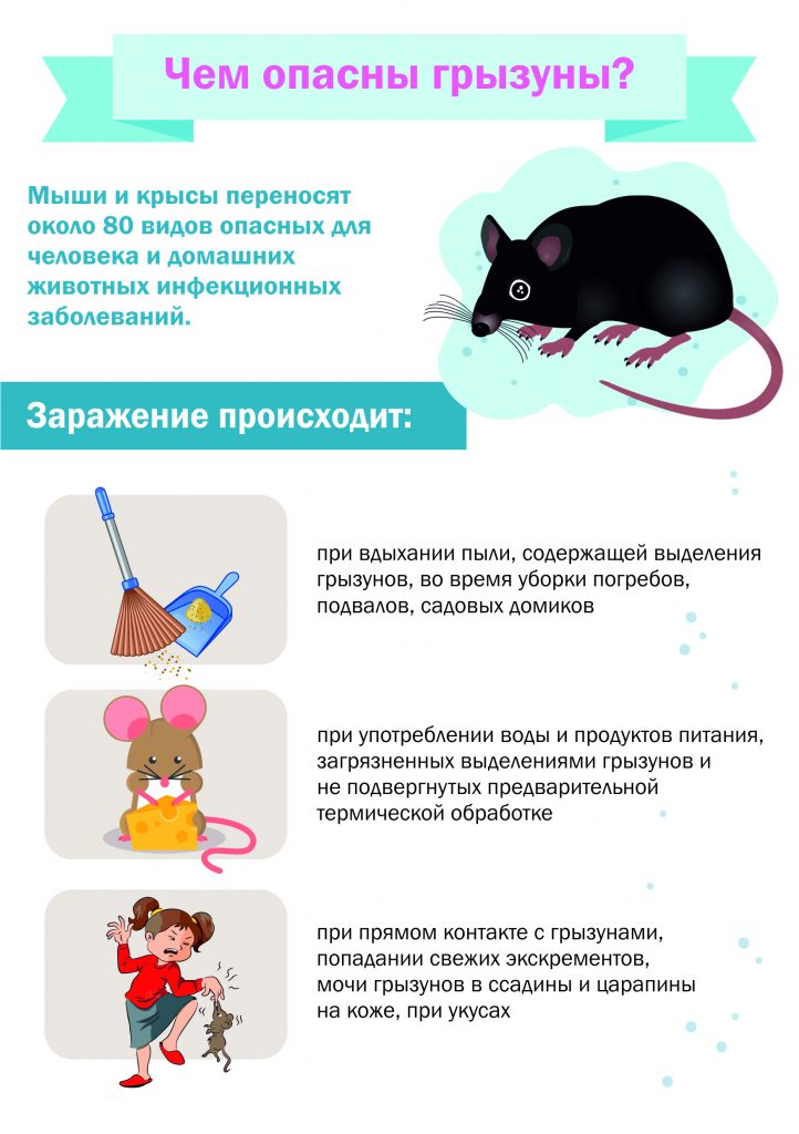 К сожалению, в наш век продвинутых технологий и изобретений, человек так и не смог придумать способ избавиться от вредителей в своем быту. Всем известные грызуны мыши и крысы являются весьма многочисленными представителями класса млекопитающих. Ведут грызуны полуподземный образ жизни в глубоких норах. Питаются эти животные на поверхности, принося массу неудобств человеку: портят продукты питания и запасы зерновых. Однако самый большой вред они наносят человеку как возбудители и переносчики различных заболеваний. Число инфекций, передаваемых грызунами человеку, велико. К ним относятся чума, туляремия, паратифы А и В, брюшной тиф, острые гастроэнтериты, ящур, лептоспироз, геморрагическая лихорадка с почечным синдромом, бешенство, гельминтозы (трихинеллез, аскаридоз), холера, дизентерия, туберкулез, псевдотуберкулез, и многие другие. Возбудители инфекций выделяются вместе с экскрементами, которыми грызуны загрязняют пищевые и кормовые продукты, воду и др.