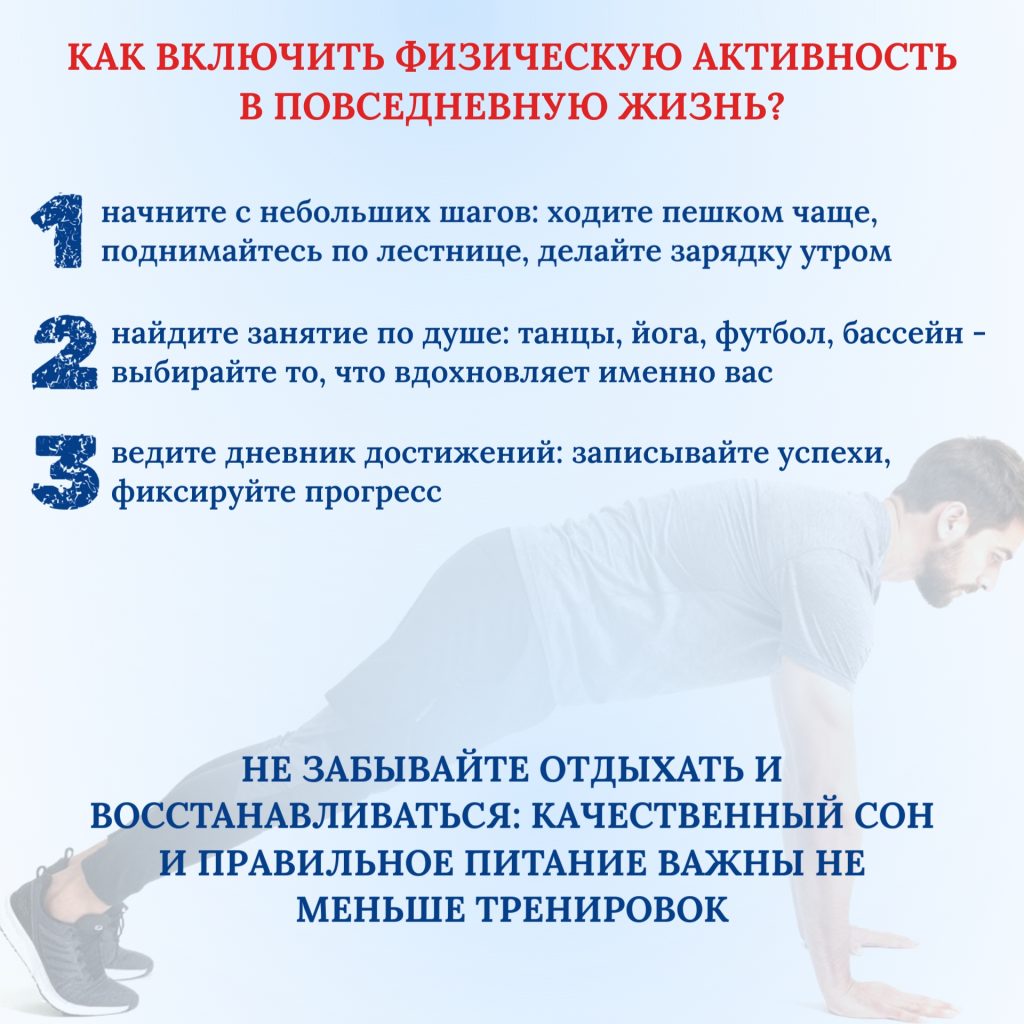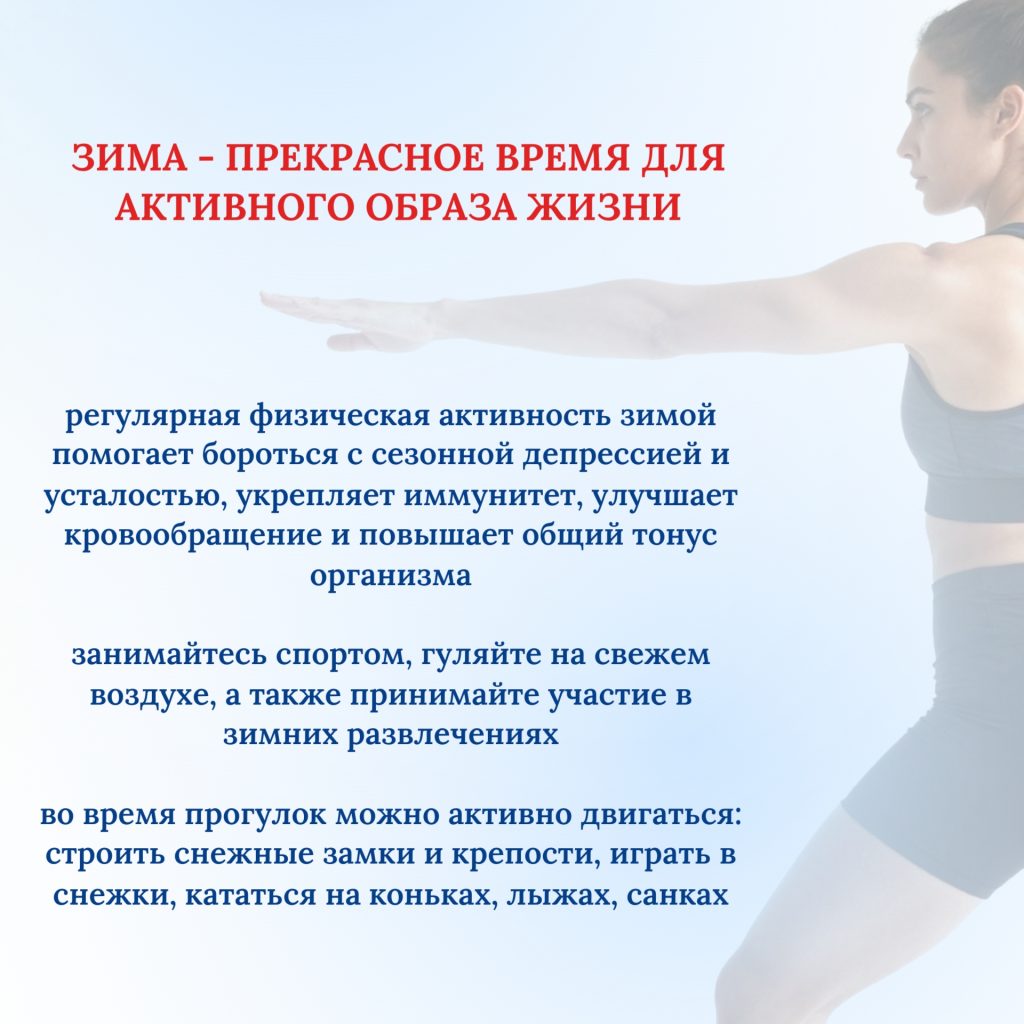 С 12 по 18 января 2026 в регионе проводится Неделя продвижения активного образа жизни В современном мире мы всё больше времени проводим за компьютером, мобильным устройством забывая о важности движения. А ведь малоподвижный образ жизни — серьезная угроза нашему здоровью.Для сохранения своего здоровья каждому человеку в любом возрасте жизненно необходима физическая активность, которая является профилактикой болезней сердечно-сосудистой системы, ожирения, сахарного диабета.Начало года — идеальное время, чтобы пересмотреть привычки и внести в жизнь важные изменения. Ключевой аспект, который заслуживает внимания — внедрение активного образа жизни. Пусть 2026 год станет началом новой эры здоровья и активности!