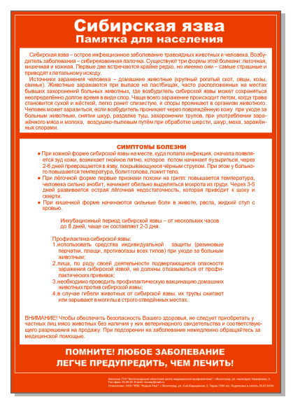 В России ежегодно регистрируются вспышки болезни сибирской язвы среди животных, приводящие к инфицированию людей. Наш регион не исключение.
